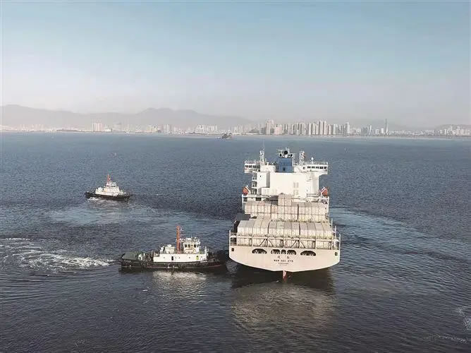 1月12日上午,在東渡海關的監(jiān)管下,新航線NS5的首艘運營船舶“達春”號裝載800TEU(TEU,即標準箱,是以20英尺集裝箱為基準的計量單位,用于統(tǒng)計船舶裝載能力及港口吞吐量,又稱國際標準箱單位)出口貨物駛離東渡海天碼頭,開啟首航之旅。這標志著廈門港2026年首條新航線順利運營。