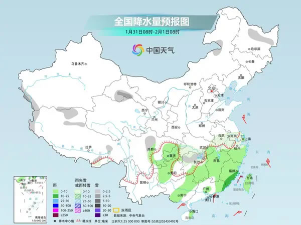 后天,降水范圍將明顯收縮,北方降水基本停歇,南方降水還將持續(xù)。預計黑龍江中部、西藏北部和東南部、甘肅西部、四川西北部、湖北南部、湖南北部、安徽南部、江蘇南部、浙江北部等地部分地區(qū)有小到中雪或雨夾雪。重慶、貴州西部、湖南中南部、江西、浙江南部、福建、臺灣島等地部分地區(qū)有小到中雨。