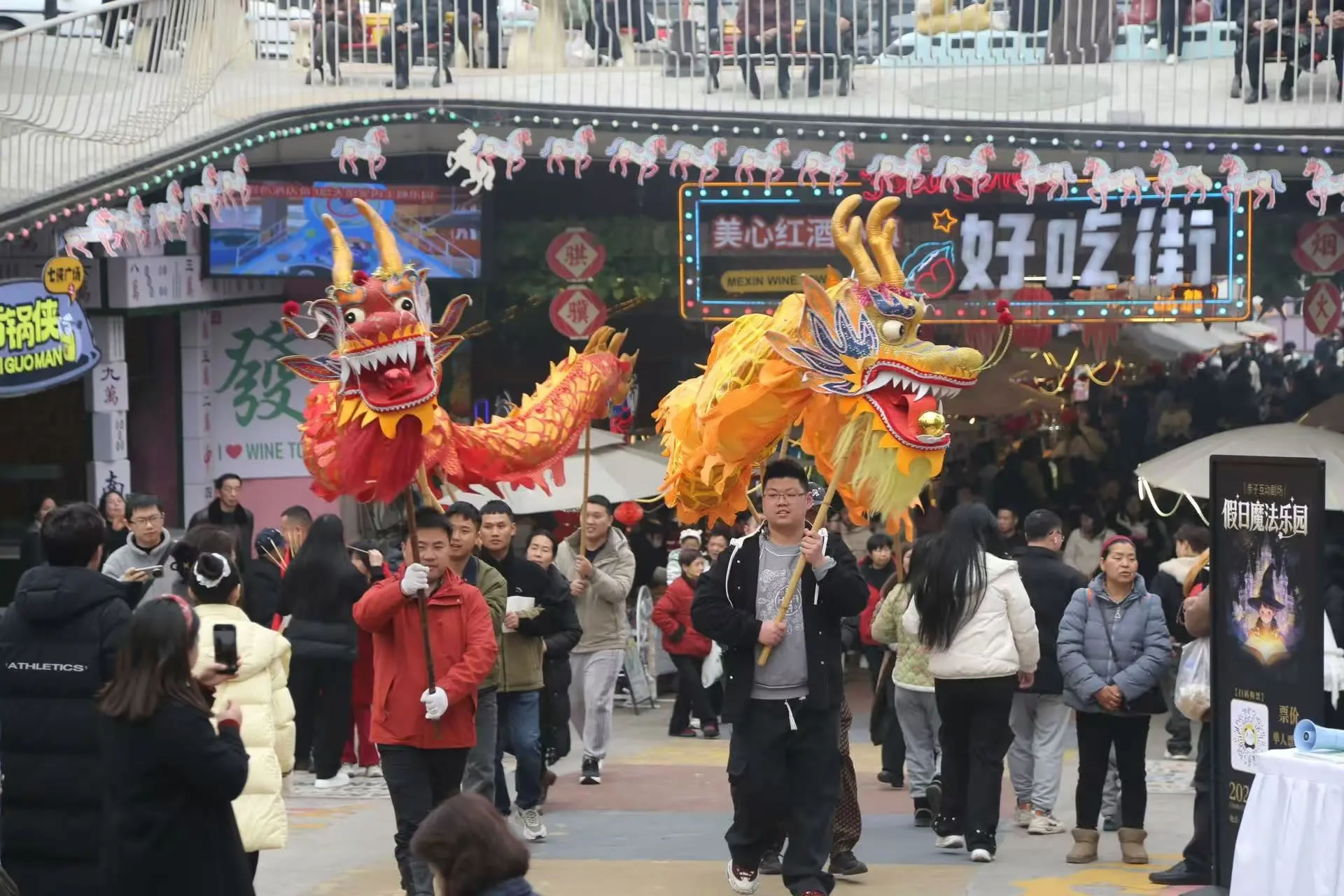 重慶歡樂谷舉行了新春大妙會(huì)活動(dòng),集水陸空立體非遺大秀、百場(chǎng)非遺演藝、多種民俗互動(dòng)、年味萬(wàn)福市集等于一體,以傳統(tǒng)與現(xiàn)代碰撞的獨(dú)特魅力為游客奉上沉浸式的地道年味體驗(yàn)。其中,非遺大秀在夜幕中璀璨亮相,1600℃的鐵水揮灑成漫天花火,演員化身“天女”撒下花瓣雨,湖面的龍船、火鳳凰、風(fēng)火輪等裝置火光綻放,光影成趣,水陸空一體聯(lián)動(dòng),驚艷絕倫;川劇變臉、潮汕英歌舞、福建游神、電音三太子等百場(chǎng)非遺演藝,讓游客可一站式領(lǐng)略全國(guó)傳統(tǒng)文化魅力,吸引絡(luò)繹不絕的游客前往。