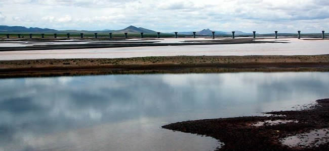 海西蒙古族藏族自治州共有大小河流160余條,流域面積大約500平方公里,常年有水的河流有40余條。多年平均徑流量超過一億立方米的河流有那棱格勒河、布哈河、柴達(dá)木河、疏勒河 、格爾木河、魚卡河、呼倫河、烏圖美仁河、黨河、沱沱河、哈勒騰河、巴音河、木里河、 諾木洪河、塔塔棱河、察汗烏蘇河等16條,流域面積近30萬平方公里。有湖泊90多個(gè),其中察爾汗鹽湖最大,面積5856平方公里。大于1平方公里的天然湖泊42個(gè),總面積1967.7平方公里其中湖水礦化度小于2克/升的淡水湖泊巧個(gè),面積476.9平方公里;咸水湖6個(gè),面積322.3平方公里;鹽湖21個(gè),面積1168.5平方公里。