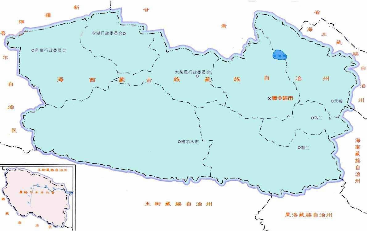 海西蒙古族藏族自治州轄3個(gè)縣級(jí)市、3個(gè)縣: