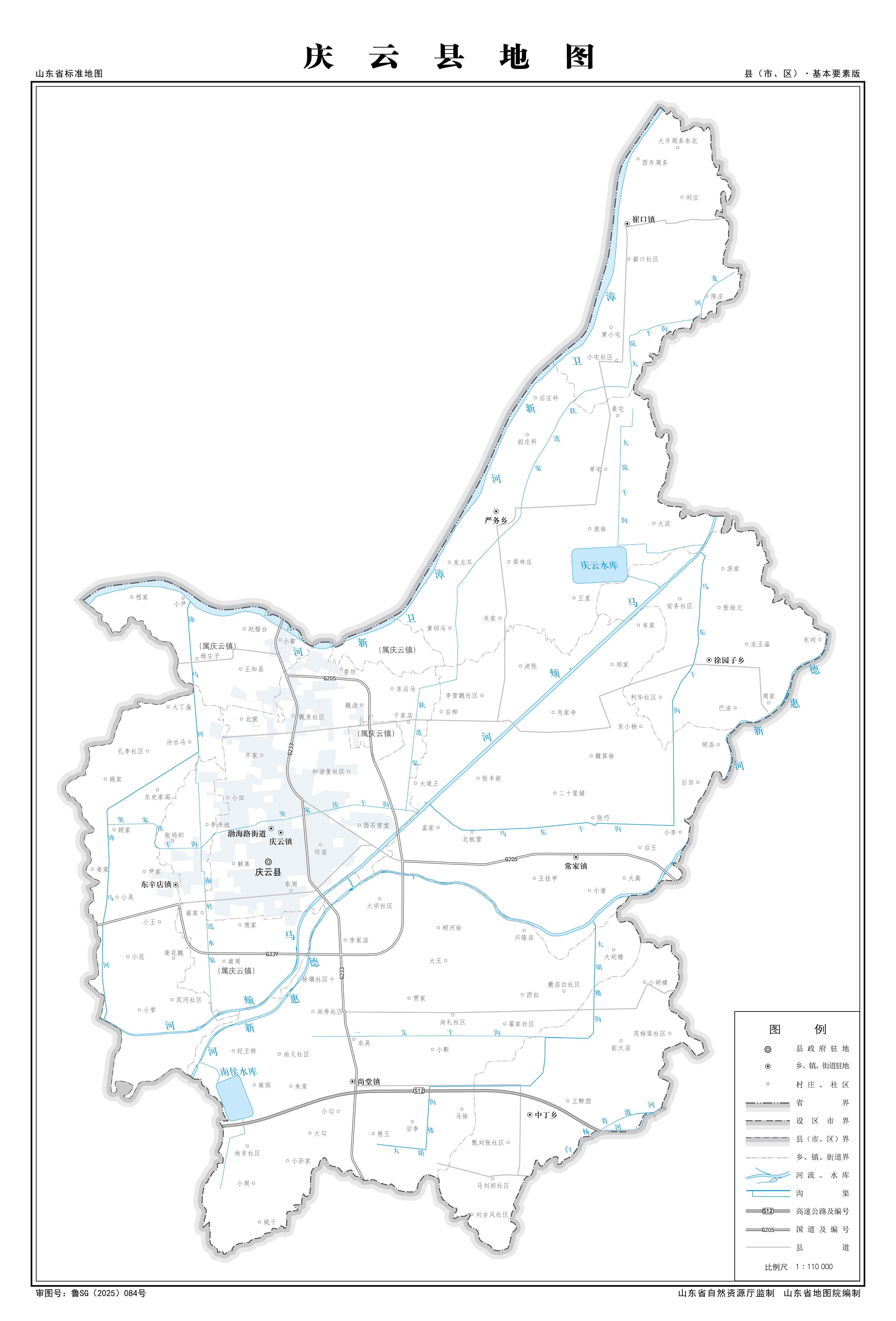 鎮(zhèn):慶云鎮(zhèn)、常家鎮(zhèn)、尚堂鎮(zhèn)、崔口鎮(zhèn)、東辛店鎮(zhèn)