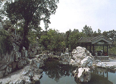 李東陽(yáng)當(dāng)時(shí)是太子太傅、吏部尚書(shū)、華蓋殿大學(xué)士、國(guó)史總裁,他為什么親自設(shè)計(jì)。為孔府出這么大力氣呢?因?yàn)槔顤|陽(yáng)的女兒嫁給了孔子六十二代 孫、衍圣公孔聞韶,做了一品公夫人,為了女兒,他才如此大賣(mài)力氣,修建花園。在修建完孔府和孔廟后,李東陽(yáng)曾4次作詩(shī)寫(xiě)賦,勒碑刻銘,記此盛舉。 此次修建之后,到明代嘉靖年間,嚴(yán)嵩取代了李東陽(yáng)的地位,也是太子太傅、吏部尚書(shū)、華蓋殿大學(xué)士、國(guó)史總裁,為當(dāng)朝首相。他也看中了孔府,把 自己的孫女嫁給了孔子六十四代孫、衍圣公孔尚賢為一品夫人。嚴(yán)嵩又幫助衍圣公擴(kuò)建重修孔府和整修花園,從各地名山搬來(lái)奇石怪巖,從各地園林移植名花奇草,使得孔儲(chǔ)花園更為可觀。 合傲岱巖松。