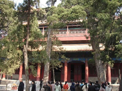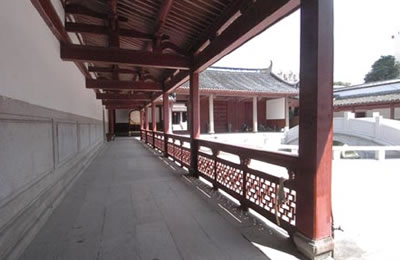 大成殿東西兩側(cè)的房子叫“兩廡”,是后世供奉先賢 先儒的地方這配享的賢儒大都是后世儒家學(xué)派中著名的人物,如董仲舒、韓愈、王陽(yáng)明等。在唐朝僅有20余人,經(jīng)過(guò)歷代增添更換,到民國(guó)時(shí),多達(dá)156人。這些配享的人原為畫(huà)像,金代改為塑像,明成化年間一律改為寫(xiě)有名字的木制牌位,供奉在一座座的神龕中。現(xiàn)在兩廡中陳列著歷代石刻。