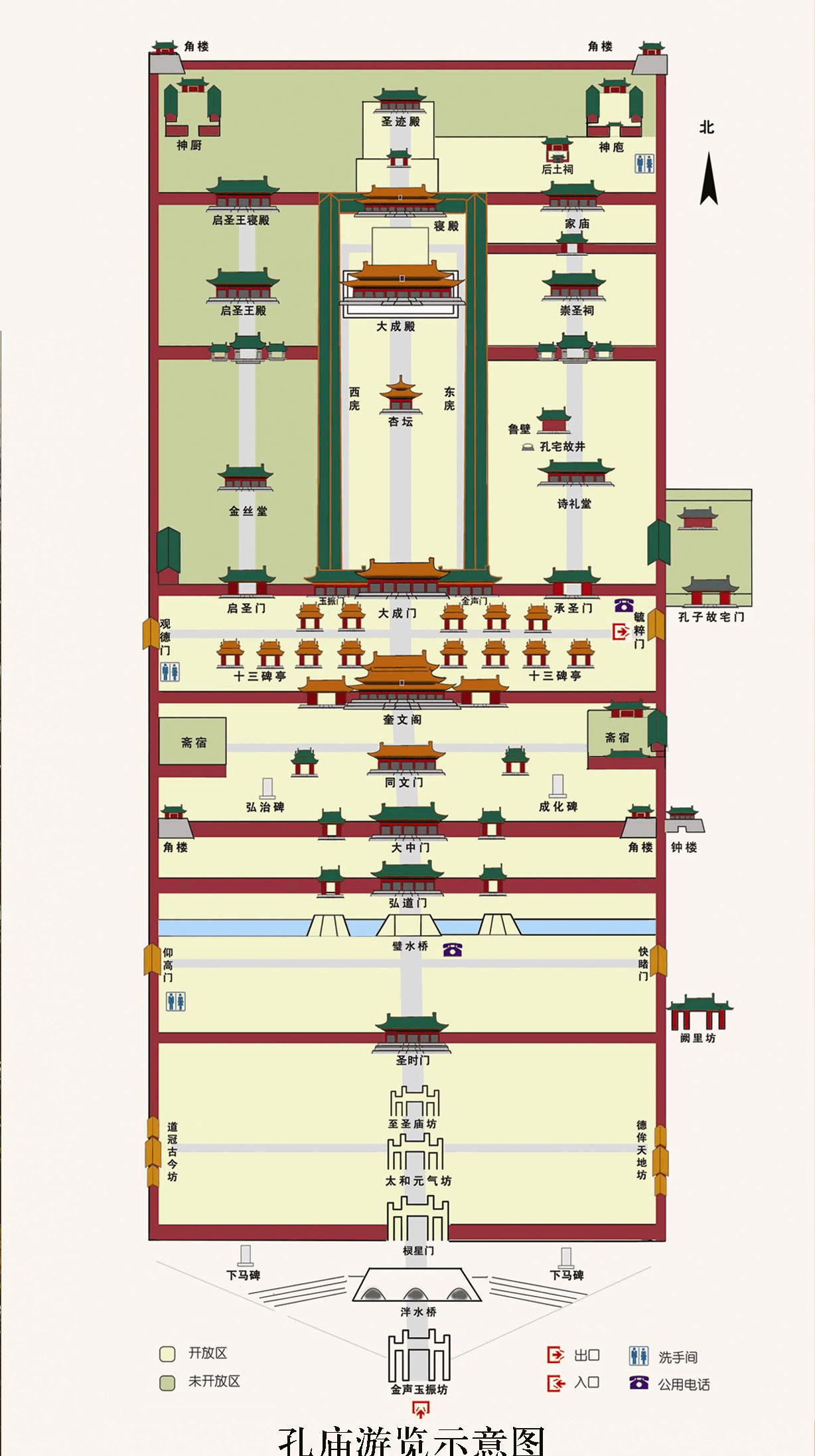 孔廟是我國(guó)歷代封建王朝祭祀春秋時(shí)期思想家、政治家、教育家孔子的廟宇 ,位于曲阜城中央。它是一組具有東方建筑特色、規(guī)模宏大,氣勢(shì)雄偉的古代建筑群。