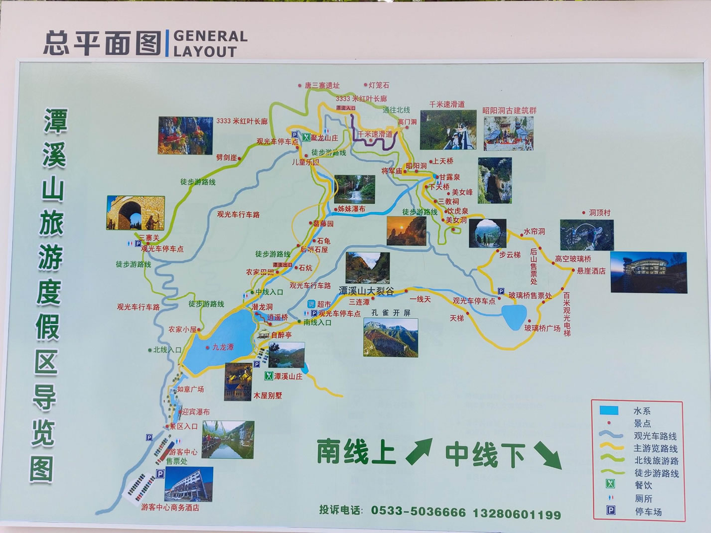 旅游中線:全程約1小時(shí),以農(nóng)家風(fēng)光、休閑娛樂為特色,主要景點(diǎn)有:潭溪山大瀑布、如意廣場(chǎng)、九龍?zhí)、潭溪山莊、自醉亭、潛龍洞、逍遙橋、潭溪山古酒坊、農(nóng)家田園、后哨石屋、櫻桃峪、神龜探路、姊妹瀑布、兒童撒野樂園、乘觀光車下山。 |