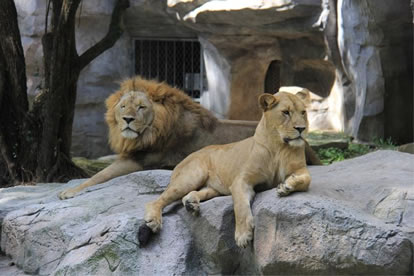 上海動物園獅虎山分為東山、中山和西山三個各自獨立的部分,展出東北虎、非洲獅和華南虎。