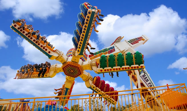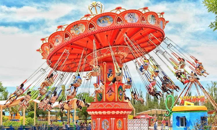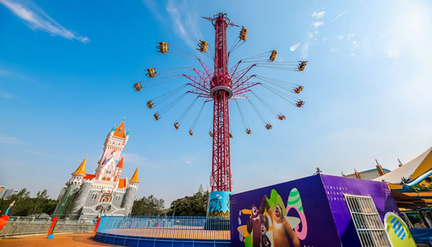 在優(yōu)美、輕快的旋律中,碩大的轉(zhuǎn)盤和轉(zhuǎn)臺錯向旋轉(zhuǎn)、搖擺,隨著轉(zhuǎn)盤的搖擺,塔身徐徐上升。此時,穩(wěn)坐飛椅的游客在離心力的作用下,上下飛旋,時而像在藍(lán)天翱翔,時而像在海上沖浪,能感受到騰云駕霧的快感。想體驗兒時蕩秋千的感覺嗎,想體驗在空中展翅飛翔的暢快嗎,那就來到高空飛翔盡情的放聲尖叫吧……