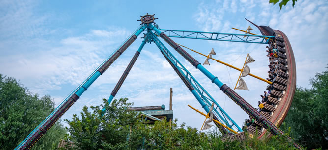 百米時速,巨幅轉(zhuǎn)動,順勢自轉(zhuǎn),似秋千蕩漾,如飛碟騰空,大擺錘讓您在極速俯仰間體驗到目眩神迷、驚心動魄的奇妙感覺。