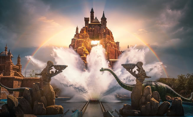 逃出恐龍島是以吳哥窟為主要建筑風(fēng)格的大型室內(nèi)漂流歷險主題項目,游客將乘坐小車進(jìn)入危險的侏羅紀(jì)時代,在茂密的叢林里展開一場驚心動魄的冒險。巨型恐龍的隆隆腳步震動著大地、頭頂上盤旋著空中獵手、巨石突然從眼前滾落,緊張和恐怖彌漫四周。隨后游船從幾十米高的懸崖瀑布上急速下墜,讓游客在驚叫聲中經(jīng)歷一場永生難忘的恐龍島冒險之旅。