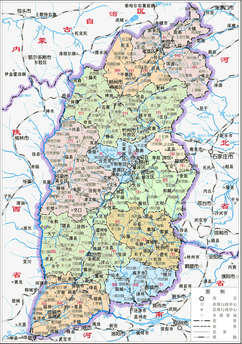 位置:山西省位于華北平原西側(cè)的山地黃土高原,省境四周大部為山河環(huán)繞,東和東南倚太行山與河北、河南兩省接壤,西和西南隔黃河與陜西、河南相望,北以長城與內(nèi)蒙古自治區(qū)相連。全省平面輪廓似由東北斜向西南的平行四邊形。南北介于北緯34°34.8′--40°43.4′之間,長約550公里,最大距離為615公里;東西介于東徑110°14.6′--114°33.4′之間。