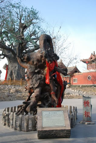 據(jù)考古人員鑒定,此根大約生長在宋元時期,距今約1000年左右,遠(yuǎn)在明初移民之前;备叨6.2米,其中外露部分4.2米;备P枝錯節(jié),形象奇特,能讓人產(chǎn)生豐富的聯(lián)想,是一棵罕見的大型古槐真根。