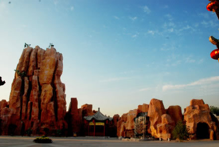 洪崖古洞建在這里與洪洞可是大有淵源的,因為洪洞這個名字就是取自城南“洪崖”與城北“古洞”!昂檠聣q壁”與“古洞連云”這八個大字是由著名書法家董壽平書寫的!昂檠鹿哦础闭嫉孛娣e800平方米,南北長40米,東西寬20米,崖高16米,洞高4米,寬2.5米,洞內(nèi)蜿蜒曲折。