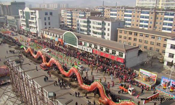 龍燈:也叫“龍舞”。身長(zhǎng)20米左右,直徑60---70公分,內(nèi)用鐵絲做成圓形,安上燈泡或蠟燭,外用紗布包裹涂色而成。舞龍者由數(shù)十人組成。1 人在前用繡球斗龍,其余全部舉龍,表演“二龍戲珠”、“雙龍出水”、“火龍騰飛”、“蟠龍鬧海”等動(dòng)作。