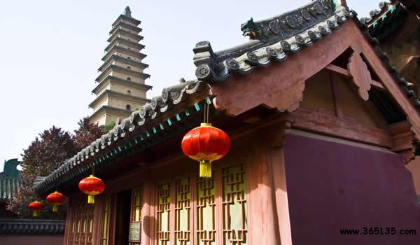 普救寺位于永濟市蒲州鎮(zhèn)的土崗上,始建于唐武則天時期,原名永清院,是一座佛教十方院。元代王實甫《崔鶯鶯待月西廂記》中說的“紅娘月下牽紅線,張生巧會崔鶯鶯”的愛情故事就發(fā)生在普救寺內(nèi)。歷經(jīng)歲月滄桑,寺內(nèi)殿閣僧舍均已毀坍湮沒,唯有13層、高37米的舍利磚塔(俗稱鶯鶯塔)依然屹立于土崗之上。20世紀80年代中期,依據(jù)唐代佛教寺院的布局和西廂記故事的格局修復了普救寺,F(xiàn)在巍峨高大的主殿、小巧玲瓏的西廂書齋、方整寬敞的塔院、崔相國夫人和鶯鶯小姐所在的佛居別墅等建筑都已落成,它們依山而筑,錯落有致。