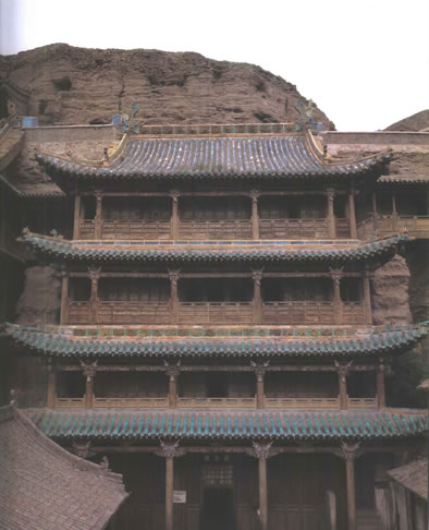 遼金:遼興宗、道宗時期,遼皇室曾對武州山石窟寺進行過延續(xù)十年之久的大規(guī)模修整。修建了石窟前接木構窟檐的通樂、靈巖、鯨崇、鎮(zhèn)國、護國、天宮、崇福、童子、華嚴、兜率十座大寺,并對一千余尊佛像進行了整修。遼保大二年(1122年)金兵攻占大同,"寺遭焚劫,靈巖棟宇,掃地無遺"(《大金西京重修華嚴寺碑》)。金皇統三年至六年(1143-1146年),住持法師稟慧重修"靈巖大閣"(今第三窟外的閣樓),"自是,山門氣象,翕然復完矣。"(《金碑》)。