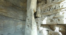 塔廟窟,一門兩窗。由于工程沒有全部完成,洞窟內外地面凹凸不平,石窟整體顯得有些零亂。