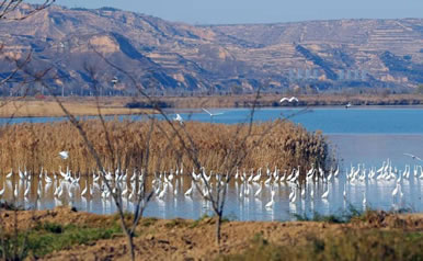 洽川地處我國(guó)候鳥(niǎo)南北遷徙的中軸線上,大片的黃河灘涂是鳥(niǎo)類(lèi)的樂(lè)園。這里水源充足,魚(yú)蝦豐富,蘆葦茂密,氣候濕潤(rùn),每年10月至來(lái)年4月,都會(huì)有丹頂鶴、白天鵝、大鴇、灰鶴等70余種國(guó)家保護(hù)的一二級(jí)鳥(niǎo)類(lèi)來(lái)此越冬,而黑鸛、蒼鷺、鴛鴦以及赤麻鴨等40余種留鳥(niǎo)則常年在這里繁衍生息,為洽川增添了無(wú)限生機(jī)。