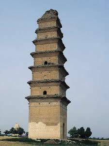 羅山寺塔位于和家莊鄉(xiāng)東馬村村南乳羅山東峰上,也是唐代所建。塔東西兩側(cè)各有清代進(jìn)士仵魁所筑土塔一座,遠(yuǎn)望狀如筆架,故又名“文峰”。塔南山坡下是孟莊鄉(xiāng)岱堡村,因之群眾俗稱(chēng)“岱堡塔”。羅山寺已不存,今僅留塔。塔為樓閣式空心方形,原為九級(jí),頂已毀,現(xiàn)存八級(jí),殘高約30米。面闊與進(jìn)深均為三間,券門(mén)南向。塔內(nèi)原架木質(zhì)樓板,沿梯可登塔頂,今已不存。塔體呈紡錘形,無(wú)基座,各級(jí)券洞有假門(mén)。高大莊嚴(yán),為合陽(yáng)諸塔之冠,亦屬陜西省重點(diǎn)文物保護(hù)單位。明末清初關(guān)中八高士之一的李灌(向若)先生曾在塔下筑穴而居,稱(chēng)“小桃源”;清代合陽(yáng)女詩(shī)人雷敬(史夫人)尋夫到此,曾用銀簪在羅山寺門(mén)前的照壁刻下“寺野鐘聲遠(yuǎn),山荒風(fēng)雨多”的詩(shī)名。大像寺位于平政鄉(xiāng)安陽(yáng)村東北。大像寺又名“大云禪院”,毀于抗日戰(zhàn)爭(zhēng)時(shí)期,獨(dú)留此塔。塔系宋代所建,為疊澀密檐式方磚塔,第一屋有券洞,內(nèi)為神龕,十三層,高約30米,下有長(zhǎng)寬各4.8米的方形基座。第一層塔檐下普柏枋上設(shè)有斗拱,仿木結(jié)構(gòu),懸空出挑,有實(shí)用價(jià)值,為本縣諸塔中所僅見(jiàn)。塔項(xiàng)已偏離中心5度,是名副其實(shí)的“斜塔”。大像寺又是一座奇妙的回音塔,站在塔北的土胡洞中用瓦片敲擊,便可聽(tīng)到清脆的蛤蟆叫聲,其余三面均無(wú)此現(xiàn)象。