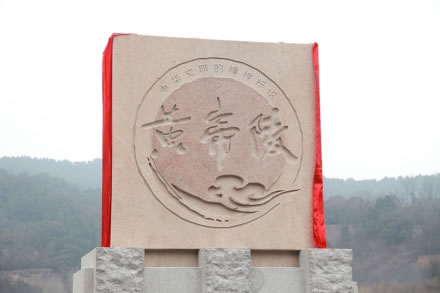位于黃帝陵印池廣場前,于2017年3月16日落成。標(biāo)識(shí)碑正面雕刻的黃帝陵標(biāo)識(shí),圓形背景源自中華文化“天圓”的傳統(tǒng)理念,虛實(shí)相間體現(xiàn)時(shí)空轉(zhuǎn)換,圓形下方的大地和如意祥云圖案,寓意黃帝開創(chuàng)的中華文明根植厚土、造福華夏。