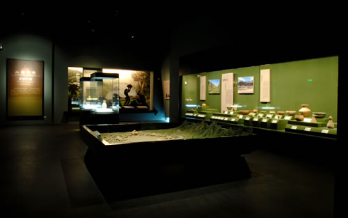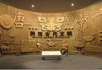 陜西歷史博物館基本陳列《陜西古代文明》,于2008年3月正式開放,以歷史進程為線索,選取各時代的典型文物進行組合陳列,來揭示陜西地區(qū)古代社會文明發(fā)展狀況。該陳列展廳面積4600平方米,共三個展室,分為七個部分(史前、周、秦、漢、魏晉南北朝、隋唐、宋元明清),精選的2000余件珍貴文物包括:反映古代先民生活情景和藝術追求的豐富多姿的彩陶器皿,反映周人興起與鼎盛的青銅器,反映秦掃六合統(tǒng)一天下氣勢的青銅劍、經機、兵馬等,以及顯示秦漢奮發(fā)崛起精神的鋼建筑構件、大型瓦當,還有反映封建盛世繁榮景象的精美的唐代金銀器和唐三彩等,并配以遺址模型、圖表、照片等輔助展品。系統(tǒng)地展現(xiàn)了自115萬年前至1840年陜西地區(qū)的古代歷史。由于中國古代社會周、秦、漢、隋、唐幾個盛期都是在陜西地區(qū)建都,所以該陳列以這幾個時期為重點,既突出反映了陜西地區(qū)古代燦爛的文化,也反映了這幾個時期中國社會經濟文化發(fā)展的最高水平。