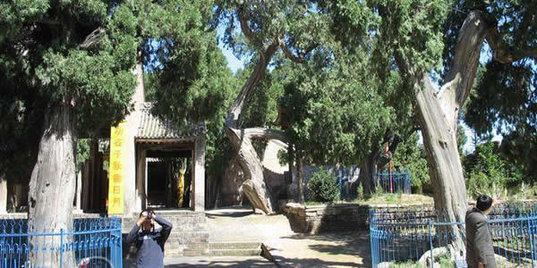 后殿后面是蒼圣墓。墓冢高3。2米,周圍44米,墓頂有古柏一株,群眾稱其“轉(zhuǎn)枝柏”,這是因其十分奇特,四面樹枝隔年輪流榮枯而得名。在整個廟院內(nèi)長著數(shù)百株古柏,郁郁蔥蔥,生機(jī)盎然,使得廟院顯得古樸莊嚴(yán)。