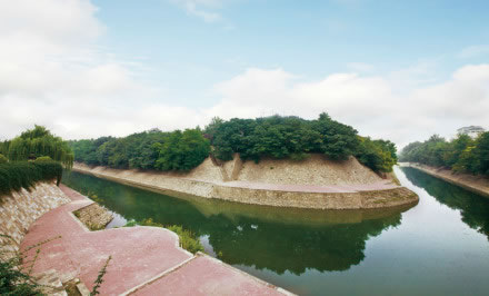 1983年,西安市人民政府結(jié)合市政建設整體規(guī)劃,投資1000萬元,開始營建環(huán)城公園。隨后,城墻上的排水系統(tǒng)得以完善,敵臺和垛口逐步恢復。黑河水經(jīng)曲江池和興東湖,引入護城河。護城河兩岸植樹后形成環(huán)城林帶;▔⒉萜罕椴汲菈χ。從西門到東門,先后建成松園、牡丹園、石榴園、櫻花園、吉備真園、含光閣、迷宮、元梯、吊橋、南門月城等游覽點。