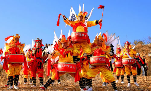 洛川蹩鼓主要流傳于陜西省洛川縣黃章、永鄉(xiāng)、舊縣等鄉(xiāng)村,為著名的"陜西三大鼓"(宜川胸鼓、安塞腰鼓、洛川蹩鼓)之一,陜西方言稱"蹦跳"為"蹩",此舞以蹦跳為特征,故稱"蹩鼓"。洛川蹩鼓最大的特點是在蹦跳中完成各種舞蹈動作。"蹩鼓"流傳于延安地區(qū)洛川縣,以縣東北的黃章、永鄉(xiāng)、舊縣等鄉(xiāng)鎮(zhèn)較為普遍,表演時,鼓手腹前挎?zhèn)直徑約50厘米的扁圓鼓,邊擊鼓、邊蹦跳。洛川蹩鼓是從戰(zhàn)國時期傳承至今.相傳是戰(zhàn)國時期士兵為了慶祝勝利和軍陣演變而來.蹩鼓表演在國內(nèi)多次獲得大獎。2006年5月20日,洛川蹩鼓經(jīng)國務院批準列入第一批國家級非物質文化遺產(chǎn)名錄。