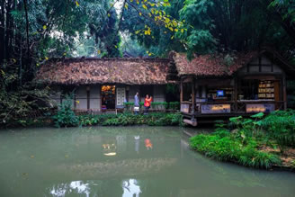 成都杜甫草堂博物館在宋元明清歷代都有修葺擴(kuò)建,已演變成一處集紀(jì)念祠堂格局和詩人舊居風(fēng)貌為一體,建筑古樸典雅、園林清幽秀麗的著名文化圣地。草堂完整保留著清代嘉慶重建時(shí)的格局,總面積近300畝。園林是非常獨(dú)特的“混合式”中國古典園林。