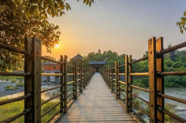 安瀾索橋又名“安瀾橋”、“夫妻橋”。位于都江堰魚嘴之上,橫跨內(nèi)外兩江,被譽(yù)為“中國古代五大橋梁”,是都江堰最具特征的景觀。始建于宋代以前,明末(17世紀(jì))毀于戰(zhàn)火。古名“珠浦橋”,宋淳化元年改“評事橋”,清嘉慶建新橋更名為“安瀾橋”。原索橋以木排石墩承托,用粗竹纜橫掛江面,上鋪木板為橋面,兩旁以竹索為欄,全長約500米,橋?yàn)殇撍骰炷翗丁?/p>