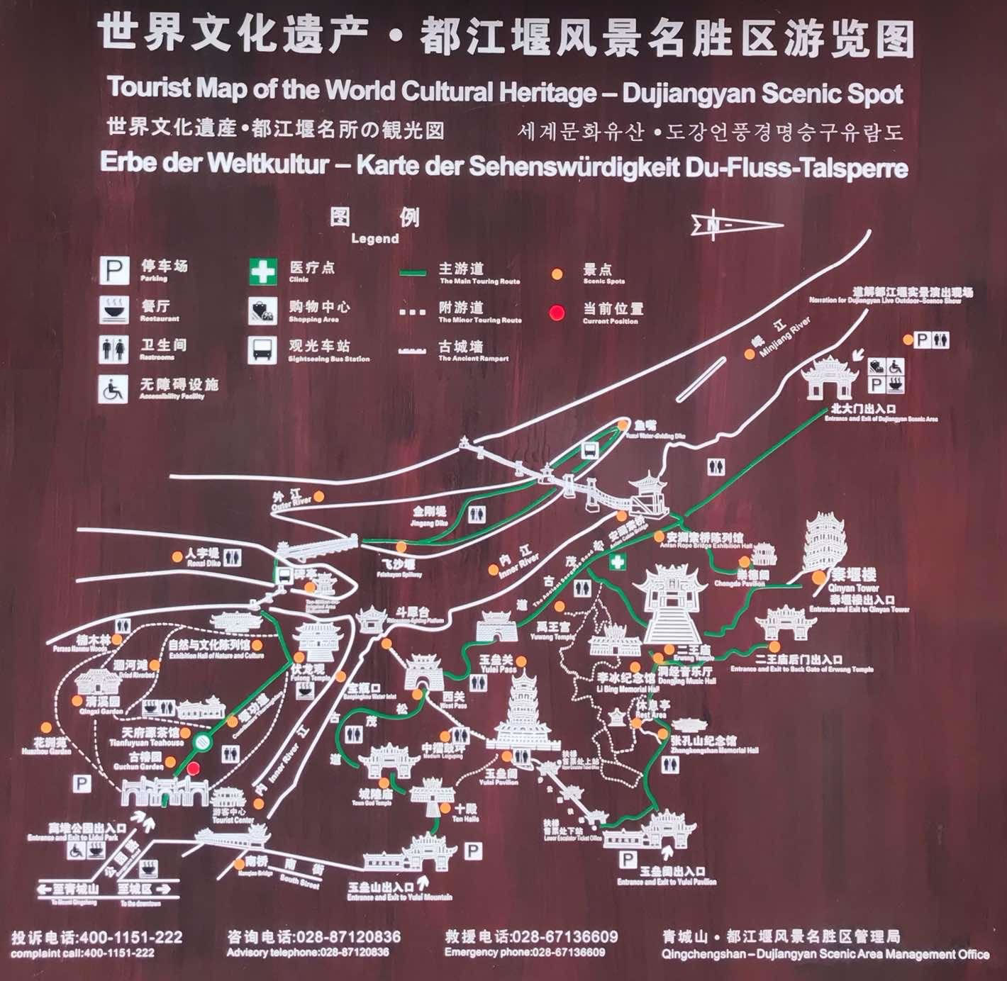 都江堰內(nèi)還有奎光塔、虹口景區(qū)、南橋、園明宮、清溪園、都江堰城隍廟、玉壘關(guān)、離堆公園、秦堰樓、玉壘山公園、擲筆槽、青城外山景區(qū)、青城前山景區(qū)青城后山景區(qū)兩河漂流藥王廟、幸福大道、翠月湖、靈巖。