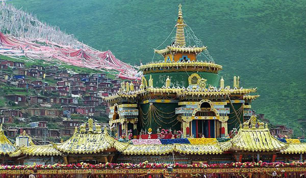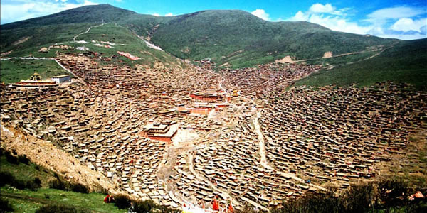 色達佛學院 距色達縣城20余公里處,有一條山溝叫喇榮溝,順溝上行數里,就是舉世聞名的喇榮寺五明佛學院,也稱色達佛學院。色達佛學院是世界上最大的藏傳佛學院之一。