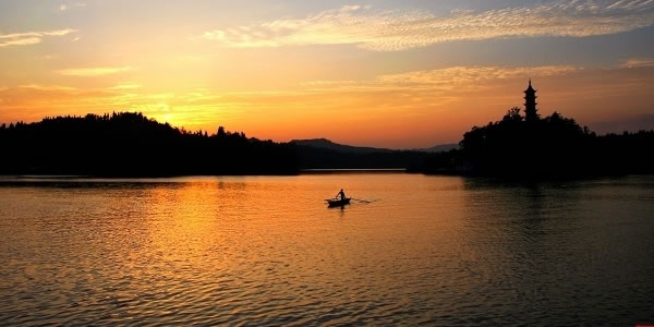 (1)川東西子湖——翠湖 出岳池東門11公里,就到了我市著名的風景湖-岳池翠湖,即川北第一風景湖。翠湖,原名響水灘水庫,位于城北8公里。1959年開始動工興建,次年8月大壩建成蓄水,蓄水量近170萬立方米。后縣委、縣府充分利用自然條件,1983年將水庫興建為旅游風景區(qū),因山清水秀,翠色可人而命名翠湖。"翠湖"二字由著名書法家李半黎書寫。有翠湖八景之說,即:玉帶長堤、平湖嵐光、芳園秋月、溢流飛瀑、銀光倒影、龜山攬勝、龍華夕照、金城煙云。