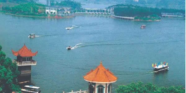 川南海潮湖旅游區(qū):它離瀘州城約20公里,沿瀘州——自貢公路而行,沿途風光綺麗,不過三十分鐘便到,是集發(fā)電生產、旅游觀光為一體的大型水域風景區(qū),總面積約18平方公里,其中有瀘州最大的水力發(fā)電站,百年桂元林,米溪溝支流風景區(qū)等。川南海潮湖旅游區(qū),石刻華表大門,古今名家題辭,盈入眼簾;山莊旅舍、賓館樓群,則環(huán)繞于湖岸;湖兩岸繁花異木、水草青青、綠樹叢叢、鳥語陣陣;沿湖的水上長廊,盤旋蜿蜒;崖邊棧道,曲折通幽;洞中探險,引人入勝;玲瓏拱橋,長虹臥波,各式各樣的景點,使人如在夢中,如醉如幻,流連忘返。