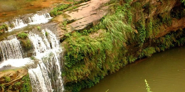 黃金峽:位于丹棱城西24千米張場鎮(zhèn),仁興鄉(xiāng)和王場鄉(xiāng)境內(nèi),峽長7.5千米,兩岸壁立,對峙如門,其崖筆立陡削直插云天,形成雄偉壯觀的"一線天"。峽內(nèi)主要景點(diǎn)有:龍?zhí)讹w瀑、金峽湖、雙猩向龍?zhí)、危崖水簾、一線天、虹渡、望魚石、金船等。當(dāng)?shù)厝搜裕?quot;金峽有三奇,曉雨不濕衣,九月瑞雪飛,夜半聞琴聲","神隆博濟(jì)廟,喊聲一出雨就到"。"黃金天子一夜鑿?fù)S金堰"等傳說故事更是神奇美妙。