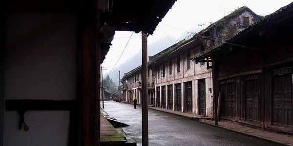 柳江鎮(zhèn)位于洪雅縣,地處通往瓦屋山國家森林公園的途中,四周青山環(huán)抱,天氣晴朗時還可遠(yuǎn)眺峨嵋群峰。解放前,這里是幾家大戶人家的統(tǒng)轄之地,每戶人家都有特別之處,當(dāng)?shù)厝诉給他們?nèi)×撕糜浀拿郑缯l家房子、誰家谷子等。幾家大戶構(gòu)成了柳江鎮(zhèn)的基礎(chǔ),這些單體的豪宅與秀美的山水幾近完美地組合在一起,加上臨水而建的街市,一幅活脫脫的山水畫卷,現(xiàn)存的有保存完好的特色建筑曾家大院和老街。