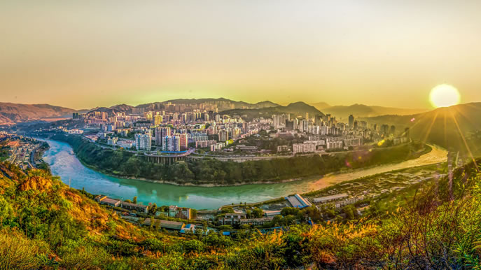 攀枝花市,位于中國西南川滇交界部,金沙江與雅礱江交匯于此。東、北面與四川省涼山彝族自治州的會理、德昌、鹽源3縣接壤,西、南面與云南省的寧蒗、華坪、永仁3縣交界,總面積7440平方千米;北距成都749千米,南接昆明351千米,是四川省通往華南、東南亞沿邊、沿?诎兜淖罱c(diǎn)。