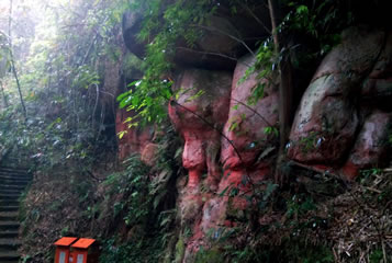 七個洞崖墓群有大小崖洞墓共28座,錯落分布在綿溪河畔的山崖上,其中7墓較集中,其余21墓分散錯落分布。集中的7個墓按北斗七星的形狀排列,均為長方形弧形頂墓室,內(nèi)部有聯(lián)通,墓門呈方形,由外到內(nèi)逐層縮小。墓室、石棺和峭壁上有各種浮雕共189幅,如伏羲女媧、夫妻宴飲、飛龍、舞女、花卉、雜技、燈籠等,工藝精美,同時還有珍稀的文字題記7處,均為漢字,分二類:一為紀(jì)年,有“熹平元年” “延光元年”等;二為姓氏,有“黃是(氏)作此冢一門,?(該字不可辨認)究苦知者謂我直,不知者奴”等涉及墓主身份的多則題記,涉及“李” “黃” “趙”等姓氏,這也是宜賓境內(nèi)發(fā)現(xiàn)的最早的文字遺存,漢字題記以及漢族姓氏的出現(xiàn),表明這些崖洞墓的主人為古代漢族人。沿著七個洞游步道往山上走大約三十米,有二十余個離地面較近的崖墓,通過臺階可以進入墓室內(nèi)部。此外,附近崖壁上還有數(shù)個未完工的古崖墓,將兩千年前的崖墓開鑿過程完好地保留下來,在綿溪河上游幾公里范圍內(nèi)還存在著另外幾十個東漢崖墓。
