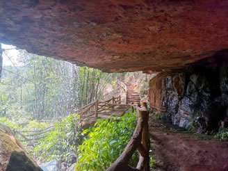 七洞溝古稱虎跳巖、飛泉峽,景區(qū)位于長壽之鄉(xiāng)、中國十佳生態(tài)養(yǎng)生旅游名縣、2019中國最美縣域——長寧縣境內(nèi),距成貴高鐵長寧站12公里,為典型丹霞峽谷地貌,森林覆蓋率高達96%,桫欏群落成片,每立方厘米負氧離子含量高達4.7萬個,高居四川第一,夏季氣溫比宜賓市區(qū)低近10度,是著名避暑勝地和天然氧吧。