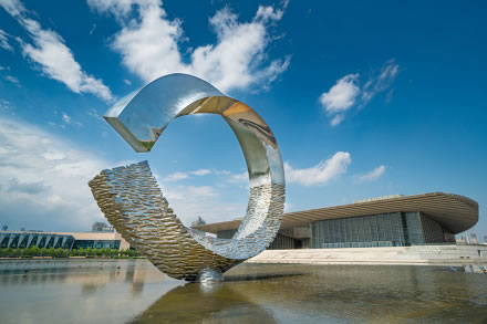 天津大劇院,是天津文化中心的核心建筑?偣3600個座位,采用世界著名專業(yè)公司的頂級音響燈光設(shè)備,擁有最先進的全自動機械舞臺,是一座現(xiàn)代化的高端劇院。