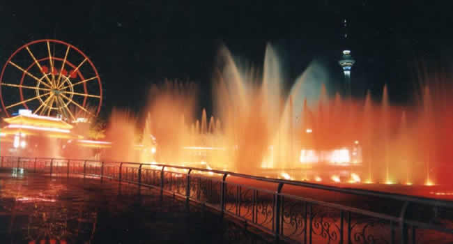 。2)、湖心雙面水幕電影:采用國際先進的高亮度投影儀,接受多種信號,在噴出的水幕上展演、切換出各種高分辨率的彩色畫面。