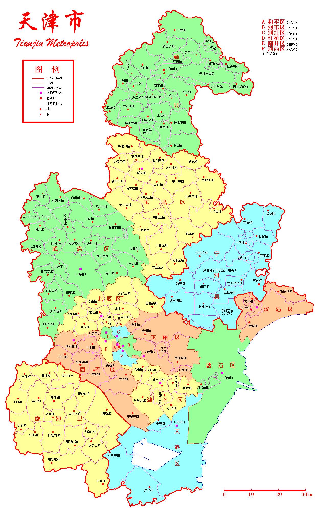 區(qū)劃:下轄和平區(qū)、河?xùn)|區(qū)、河西區(qū)、南開區(qū)、河北區(qū)、紅橋區(qū)、塘沽區(qū)、漢沽區(qū)、大港區(qū)、東麗區(qū)、西青區(qū)、津南區(qū)、北辰區(qū)、寶坻區(qū)、武清區(qū)、薊縣、寧河縣、靜海縣。