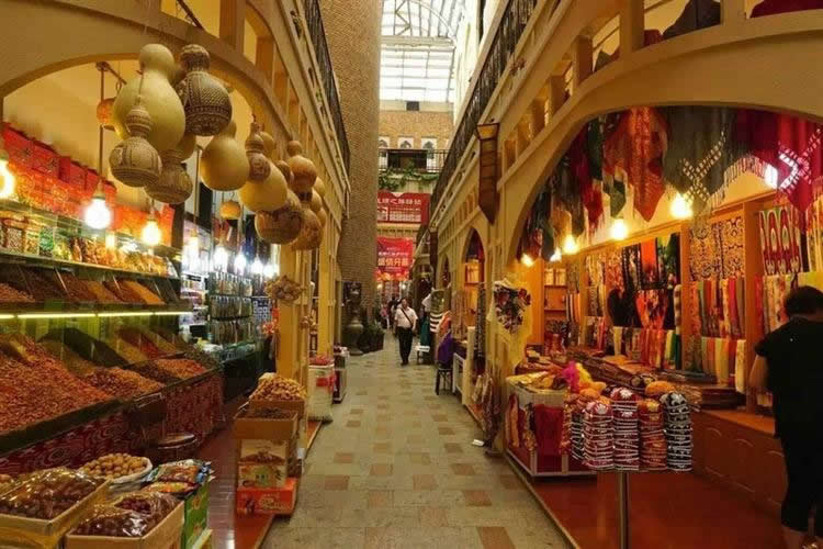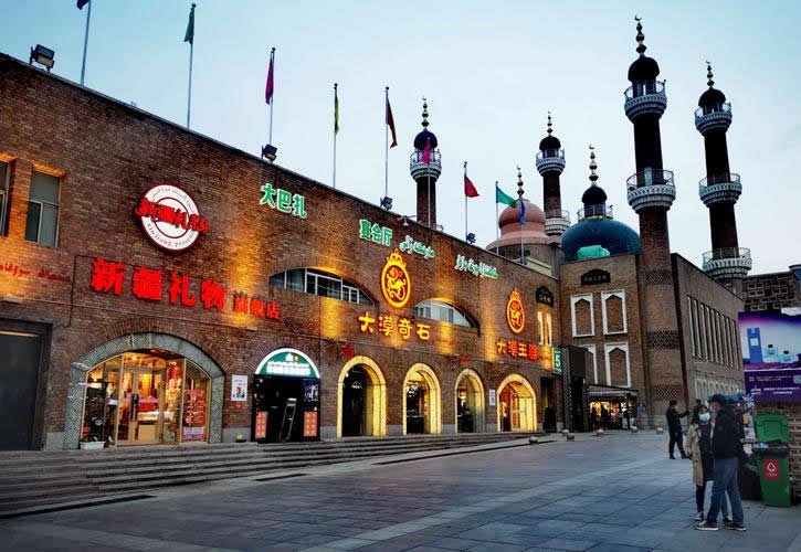 新疆國(guó)際大巴扎,于2003年6月26日落成,是世界規(guī)模最大的大巴扎(維吾爾語(yǔ),意為集市、農(nóng)貿(mào)市場(chǎng)),集伊斯蘭文化、建筑、民族商貿(mào)、娛樂(lè)、餐飲于一體,是新疆旅游業(yè)產(chǎn)品的匯集地和展示中心,是“新疆之窗”、“中亞之窗”和“世界之窗”,2004年入選烏魯木齊市“十佳建筑”,具有濃郁的伊斯蘭建筑風(fēng)格,在涵蓋了建筑的功能性和時(shí)代感的基礎(chǔ)上,重現(xiàn)了古絲綢之路的繁華,集中體現(xiàn)了濃郁西域民族特色和地域文化。