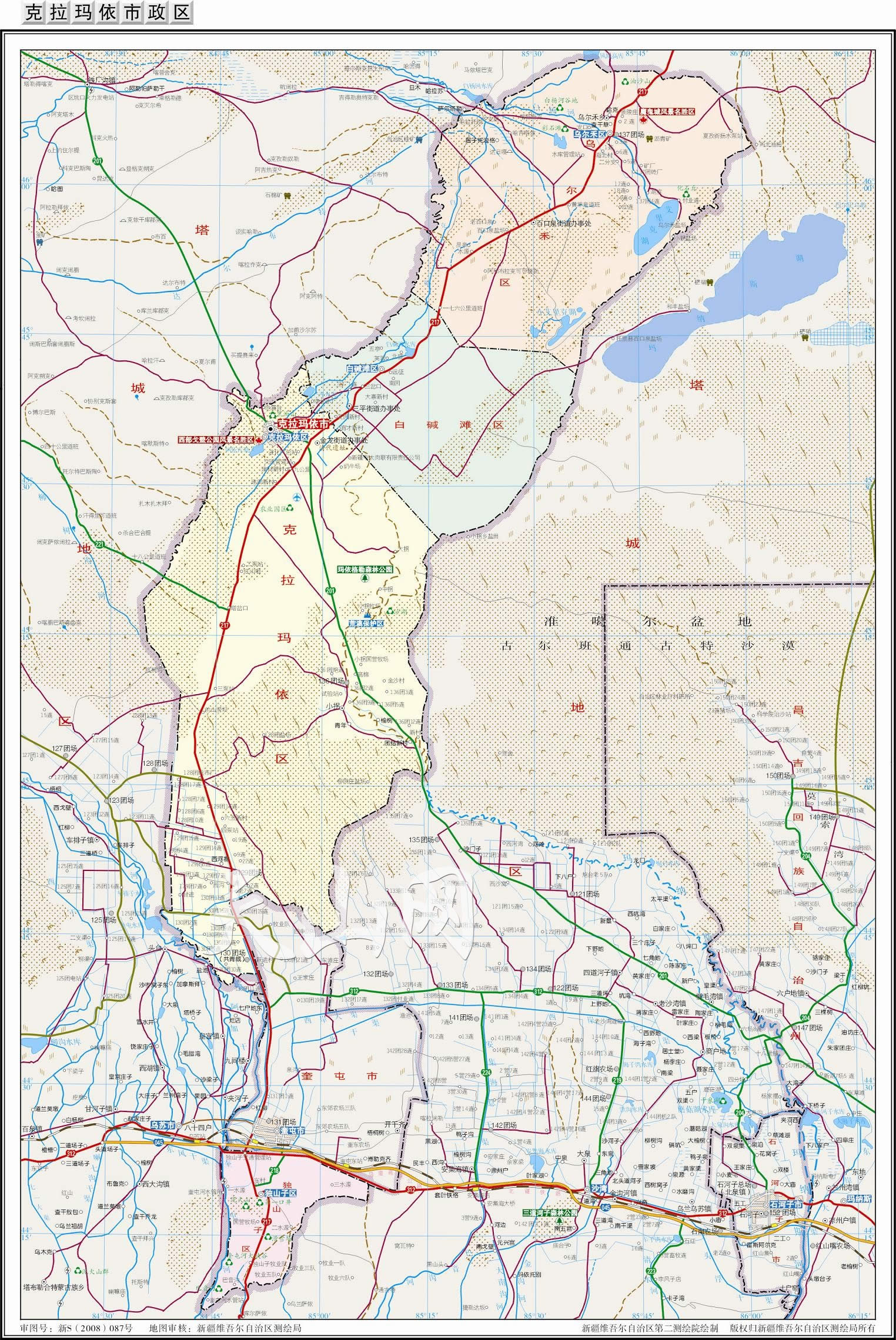 克拉瑪依區(qū) 面積3833.4平方千米,人口261712,政府駐天山路42號,下轄7個街道、1個鄉(xiāng)