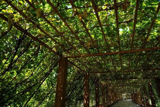 風(fēng)景秀麗的葡萄溝,以盛產(chǎn)優(yōu)質(zhì)葡萄而聞名中外。1994年溝里種植葡萄315.6 公頃,生產(chǎn)鮮葡萄8601噸。這里主要種植無核白葡萄,還有馬奶子、紅葡萄、喀什哈爾、日加干、瑣瑣等 13個品種。其果實呈球形、卵形、橢園形等,有的葡萄晶瑩如珍珠,有的鮮艷似瑪瑙,而有的綠若翡翠。那五光十色、翠綠欲滴的鮮葡萄,令人垂涎不止。尤其是這里生產(chǎn)的無核白葡萄、皮薄、肉嫩、多汁、味美,營養(yǎng)豐富,素有“珍珠”美稱,其含糖量高達20-24%,超過美國加利福尼亞州的葡萄,居世界之冠。用無核白鮮葡萄晾制的葡萄干,含糖量高達60%,被人們視為葡萄干中的珍品。