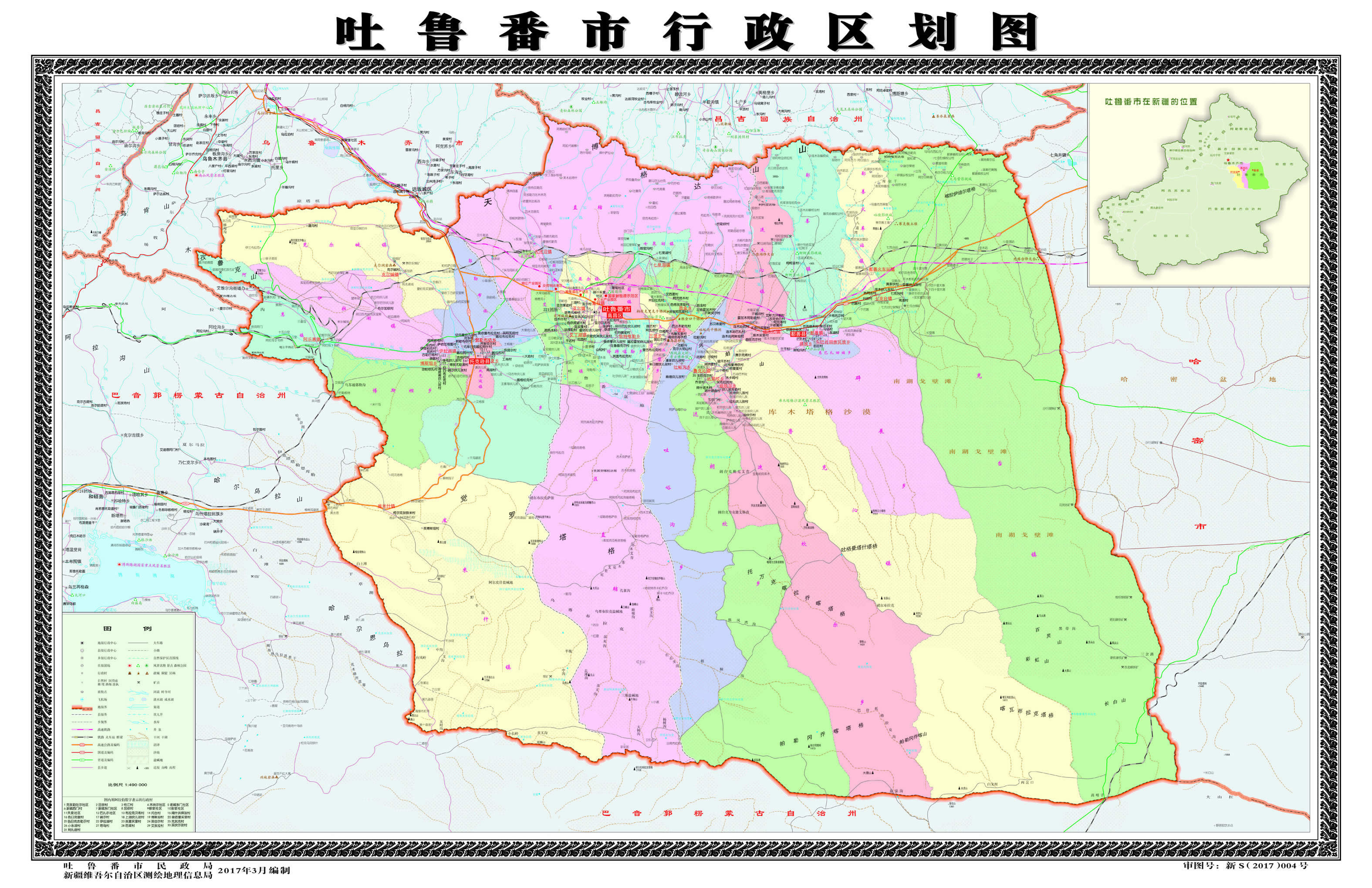 2015年4月,國(guó)務(wù)院批復(fù)同意撤銷吐魯番地區(qū)和縣級(jí)吐魯番市,設(shè)立地級(jí)吐魯番市;吐魯番市設(shè)立高昌區(qū),以原縣級(jí)吐魯番市的行政區(qū)域?yàn)楦卟齾^(qū)的行政區(qū)域;吐魯番市轄原吐魯番地區(qū)的鄯善縣、托克遜縣和新設(shè)立的高昌區(qū)。