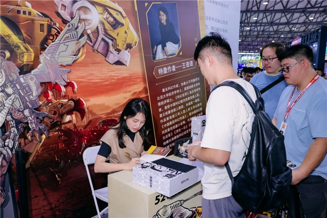 作為國創(chuàng)變形機(jī)甲代表性IP,猛獸匣(BEASTBOX)系列成為本次52TOYS展區(qū)的最大亮點(diǎn),產(chǎn)品和內(nèi)容成果頗豐。備受玩家期待的猛獸匣首部官方小說《猛獸匣:金屬之歌》珍藏版在展會現(xiàn)場超前發(fā)售,小說作者、曾榮獲中國科幻銀河獎(jiǎng)最佳新人獎(jiǎng)的科幻作家王諾諾親臨現(xiàn)場簽售。小說以其精美的裝幀與引人入勝的設(shè)定,迅速成為資深玩家與科幻愛好者爭相收藏的對象,現(xiàn)場等候簽售及購買的粉絲排起長龍。