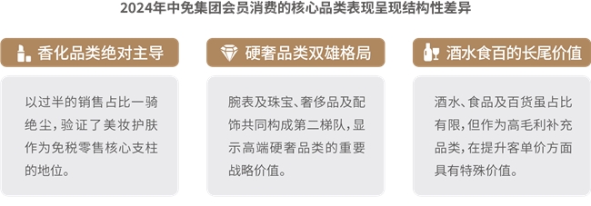 8.消費(fèi)呈現(xiàn)“美妝霸榜”、“硬奢守局”、“酒水突圍”新格局。香化方面,彩妝香水增長(zhǎng)亮眼,外籍旅客、男性客群、國潮品牌成為重要增長(zhǎng)點(diǎn),中免通過“線下定制護(hù)膚方案+線上精準(zhǔn)推送”提升復(fù)購;奢侈品及配飾方面,消費(fèi)結(jié)構(gòu)多元化,超高端市場(chǎng)增長(zhǎng)顯著,輕奢區(qū)間保持穩(wěn)定需求,中免以“私人導(dǎo)購+機(jī)票報(bào)銷”等尊享服務(wù)鎖定高端客群;腕表及珠寶方面,品類分化顯著,首飾品類同比增長(zhǎng),腕表需求區(qū)域性特征突出;酒水方面,市場(chǎng)擴(kuò)容升級(jí),品類及人群消費(fèi)分層顯著,渠道互補(bǔ)發(fā)展,呈現(xiàn)出規(guī)模擴(kuò)張與結(jié)構(gòu)升級(jí)并行的顯著特征;食品及百貨方面,市場(chǎng)穩(wěn)健擴(kuò)容,圈層特征鮮明,Z世代和銀發(fā)人群引發(fā)情感和健康消費(fèi)變革,中免針對(duì)性布局“國潮品牌+細(xì)分場(chǎng)景”,精準(zhǔn)匹配圈層需求。中免集團(tuán)已形成包含精品、香化、煙酒等全品類、超36萬SKU的商品矩陣,并在2024年成功引入200多個(gè)新品牌,獨(dú)家發(fā)售19個(gè)系列500余款全球限量商品,商品競(jìng)爭(zhēng)力持續(xù)增強(qiáng)。