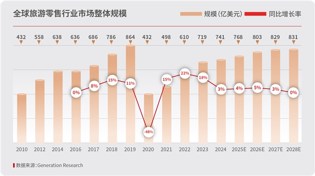 1.全球市場(chǎng)保持復(fù)蘇勢(shì)頭。2024年,全球免稅及旅游零售市場(chǎng)規(guī)模為741.3億美元,同比增長(zhǎng)3%,恢復(fù)至2019年的85.8%,這一回升態(tài)勢(shì),得益于國際旅游復(fù)蘇、政策支持與市場(chǎng)開放、新興市場(chǎng)崛起及數(shù)字化轉(zhuǎn)型多重合力,行業(yè)活力持續(xù)釋放。