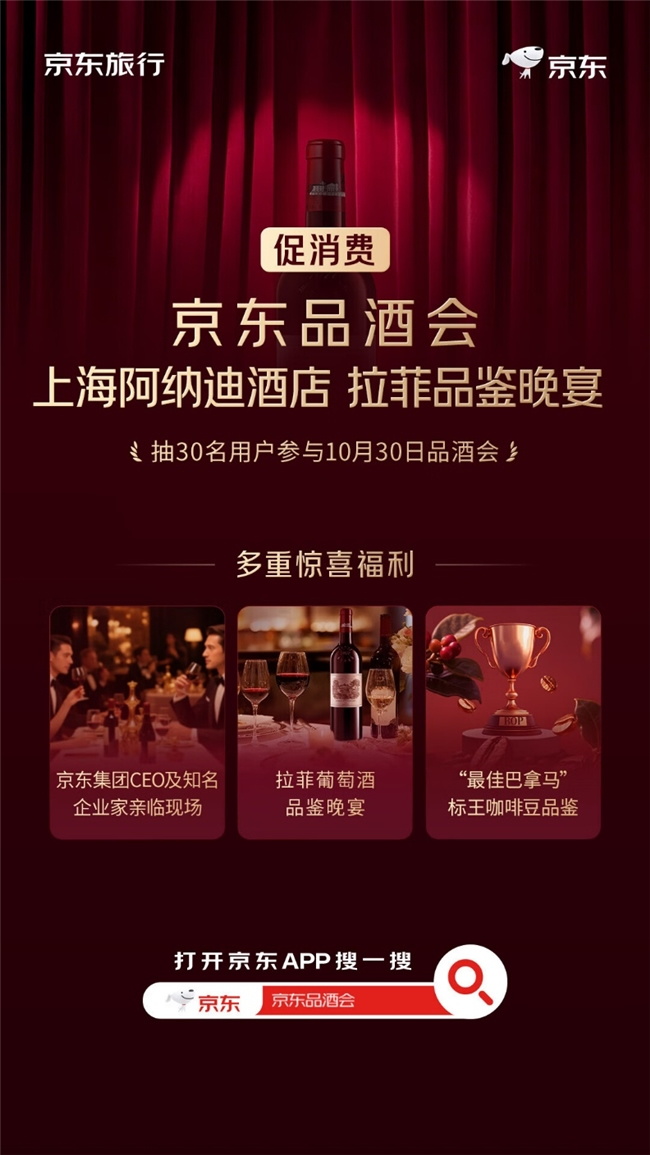 繼9月16日首場京東品酒會爆火,官宣24小時百萬人涌入活動會場后,時值京東11.11期間,第二場京東品酒會即將來襲。10月30日,京東旅行將在上海阿納迪酒店舉辦第二場品酒會,京東集團(tuán)SEC副主席、京東集團(tuán)CEO許冉及其他知名企業(yè)家現(xiàn)身現(xiàn)場,和用戶一起“品名酒,交朋友”。